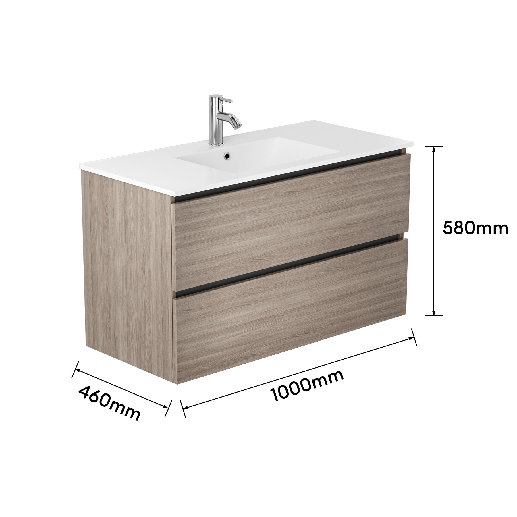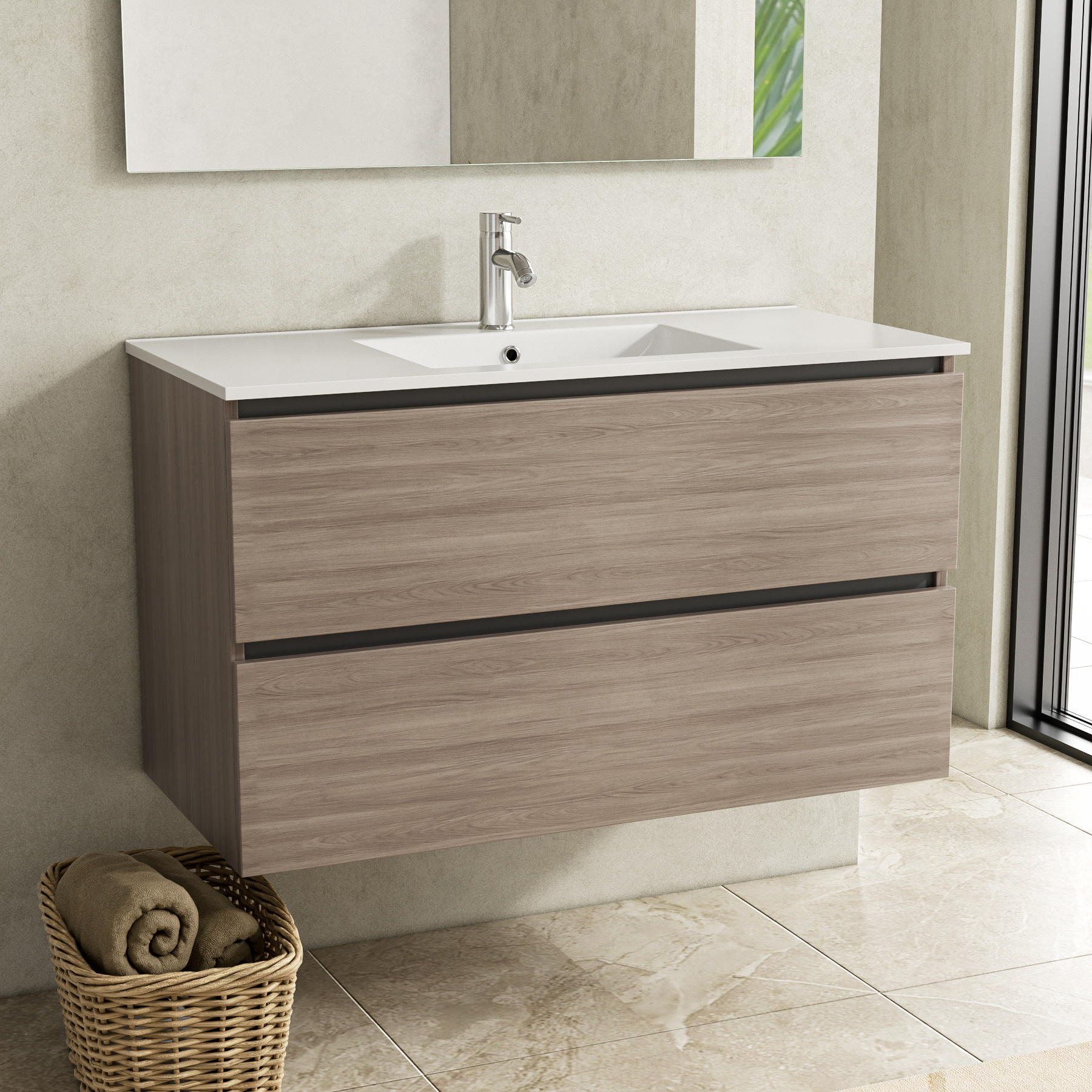 Met dit moderne badkamermeubel creëert u eenvoudig een stijlvolle en functionele badkamer. Door de combinatie van sterke materialen, hoogwaardige ladegeleiders en een tijdloos design is dit meubel een ideale keuze voor iedere badkamer.
