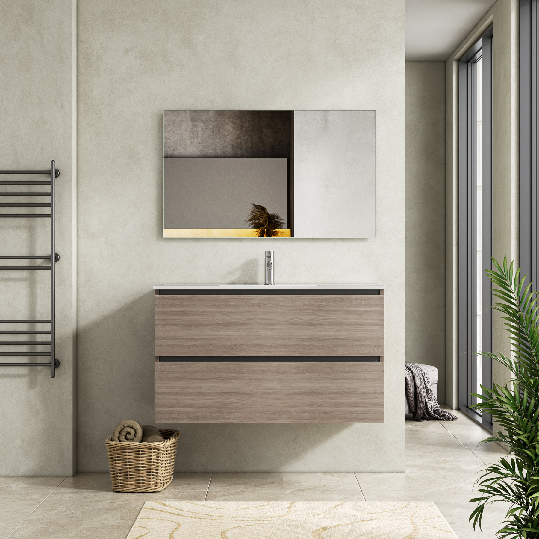 Door het strakke en minimalistische ontwerp past dit design badkamermeubel perfect in verschillende badkamerstijlen, van modern tot tijdloos.