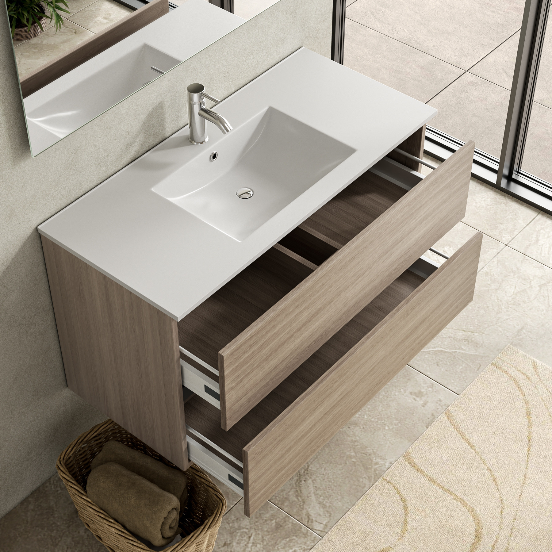 Badkamermeubel – Modern Design met 18 mm MDF en DTC Soft-Close Ladegeleiders inclusief wasbak