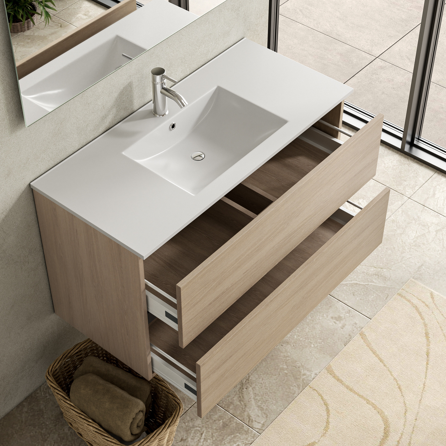 Modern Badkamermeubel met Soft-Close Lades en inclusief Wasbak