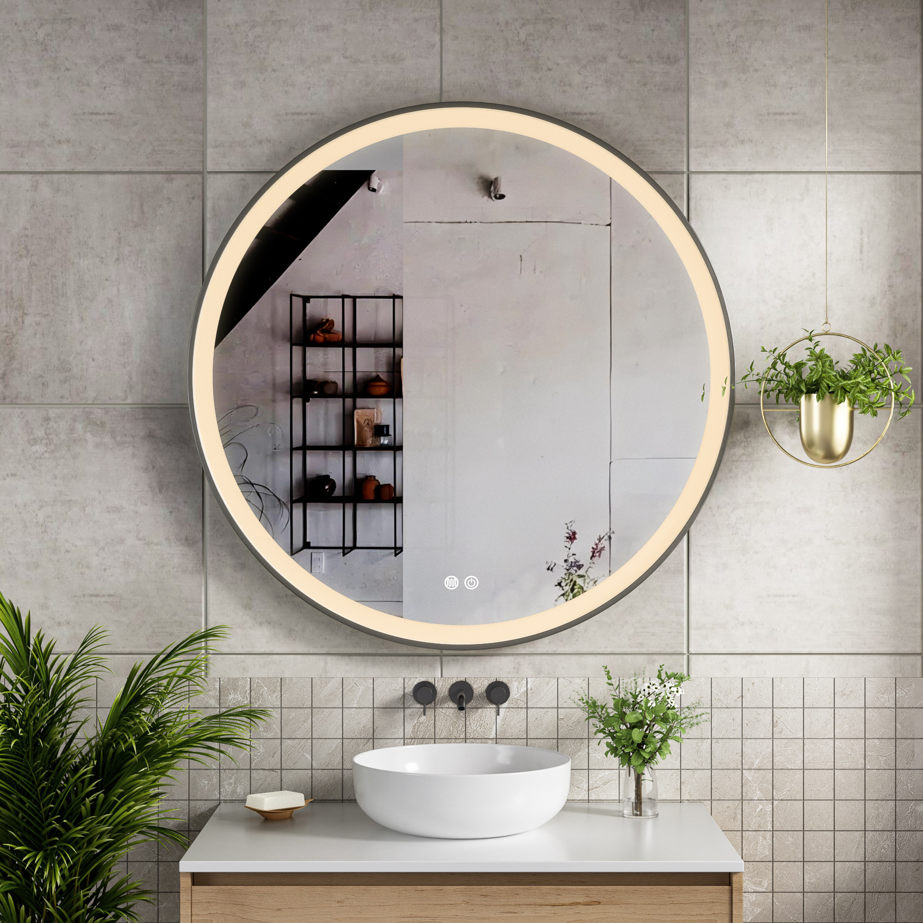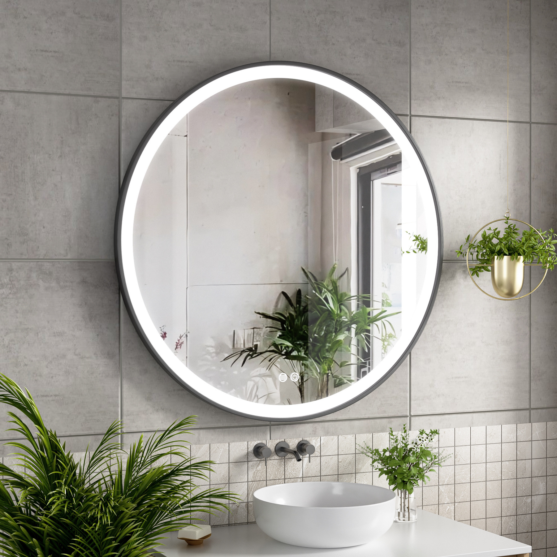 Voeg stijl en functionaliteit toe aan uw badkamer met deze ronde badkamerspiegel van 90 cm. Het elegante ronde design maakt deze spiegel een echte blikvanger boven uw badkamermeubel en past perfect in zowel moderne als minimalistische badkamers.