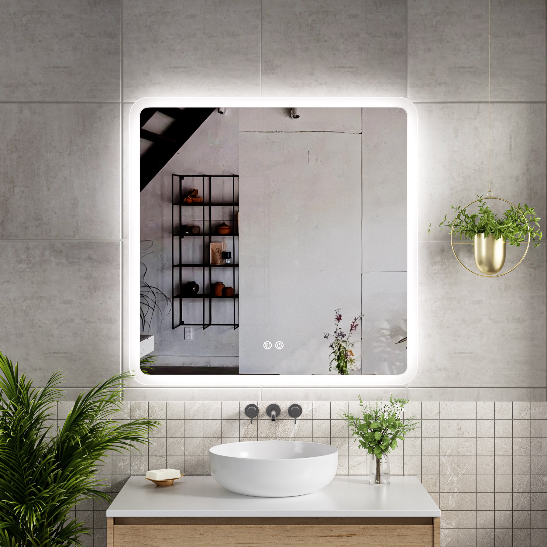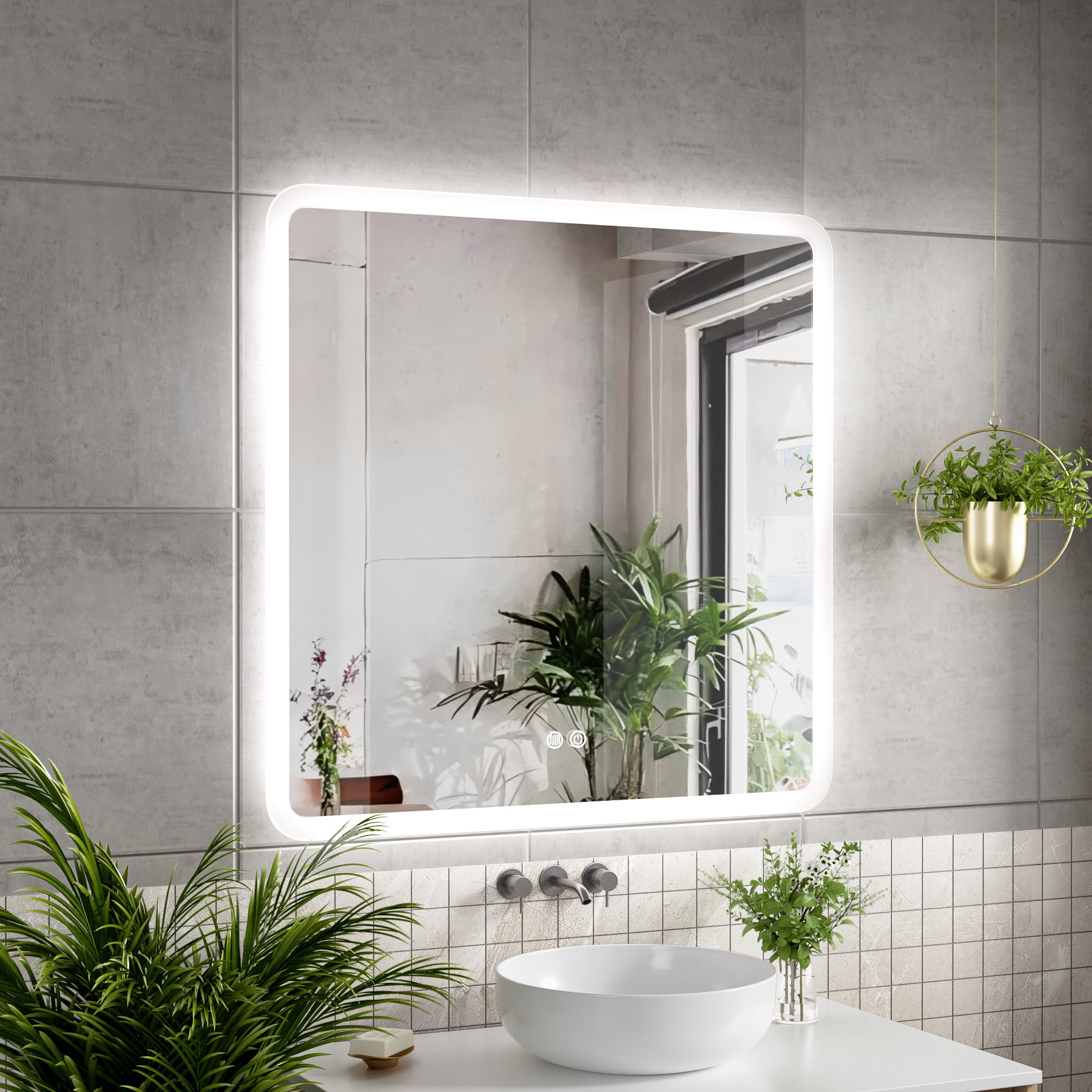 Vierkante Badkamerspiegel 80 x 80 cm met Dimbare LED Verlichting en Anti-Condens