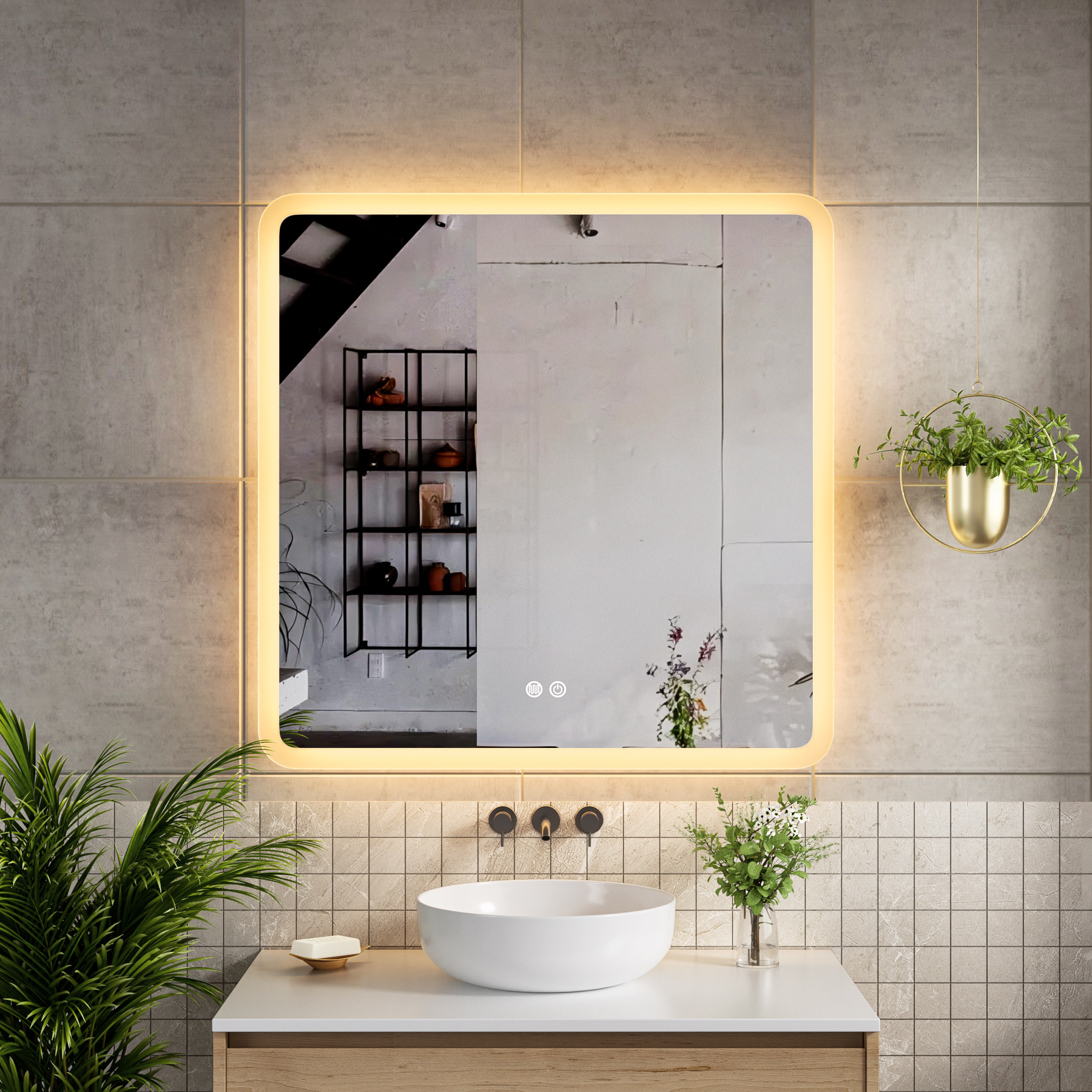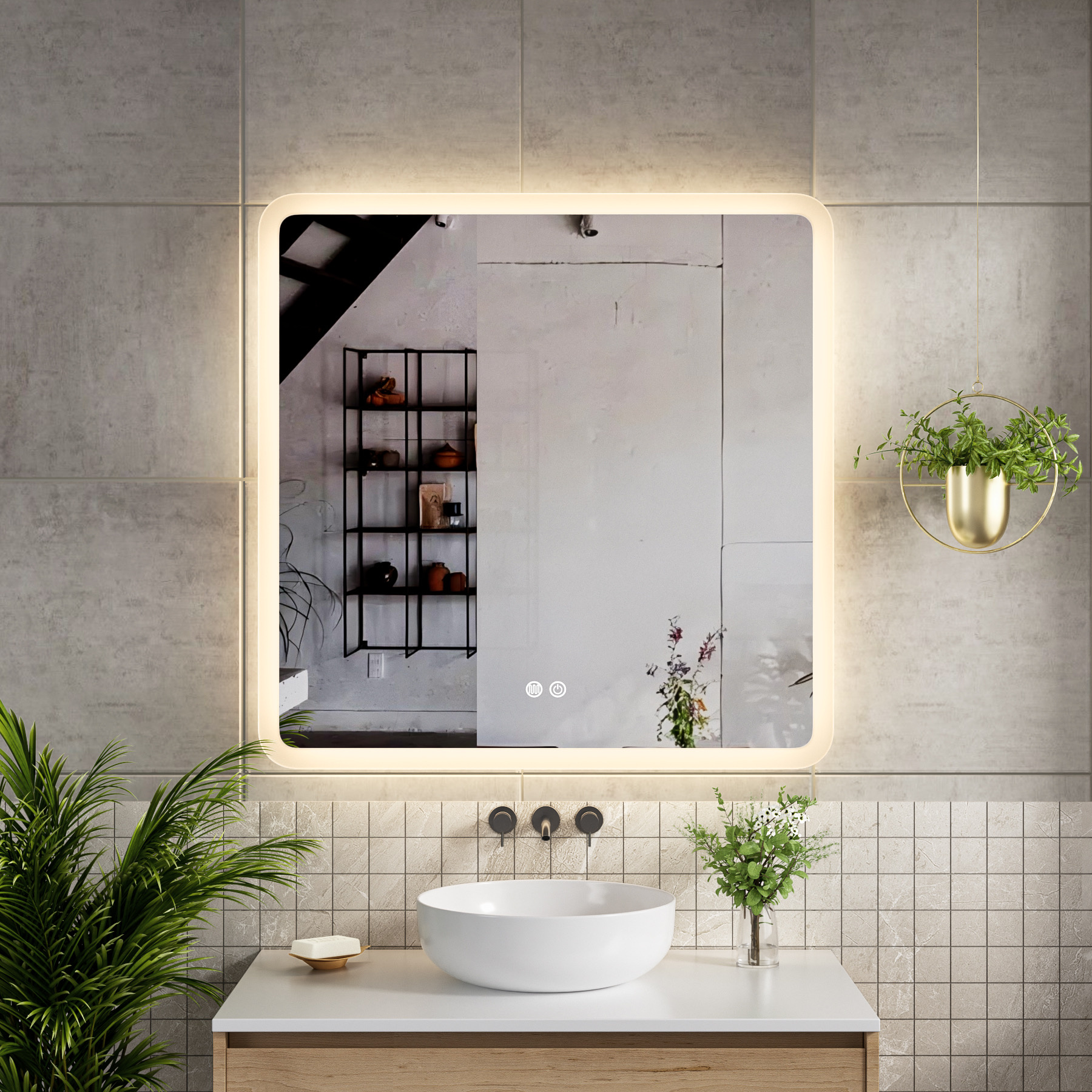 Met deze vierkante badkamerspiegel met dimbare LED verlichting creëert u eenvoudig een stijlvolle en functionele badkamer. De combinatie van modern design, verlichting in drie kleuren en anti-condens technologie zorgt voor optimaal comfort en een luxe uitstraling.