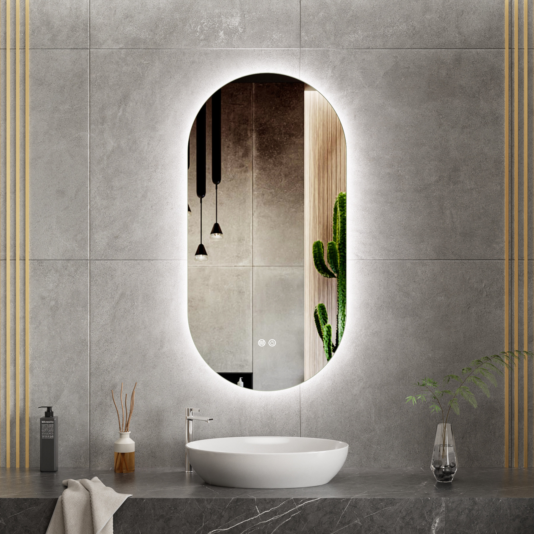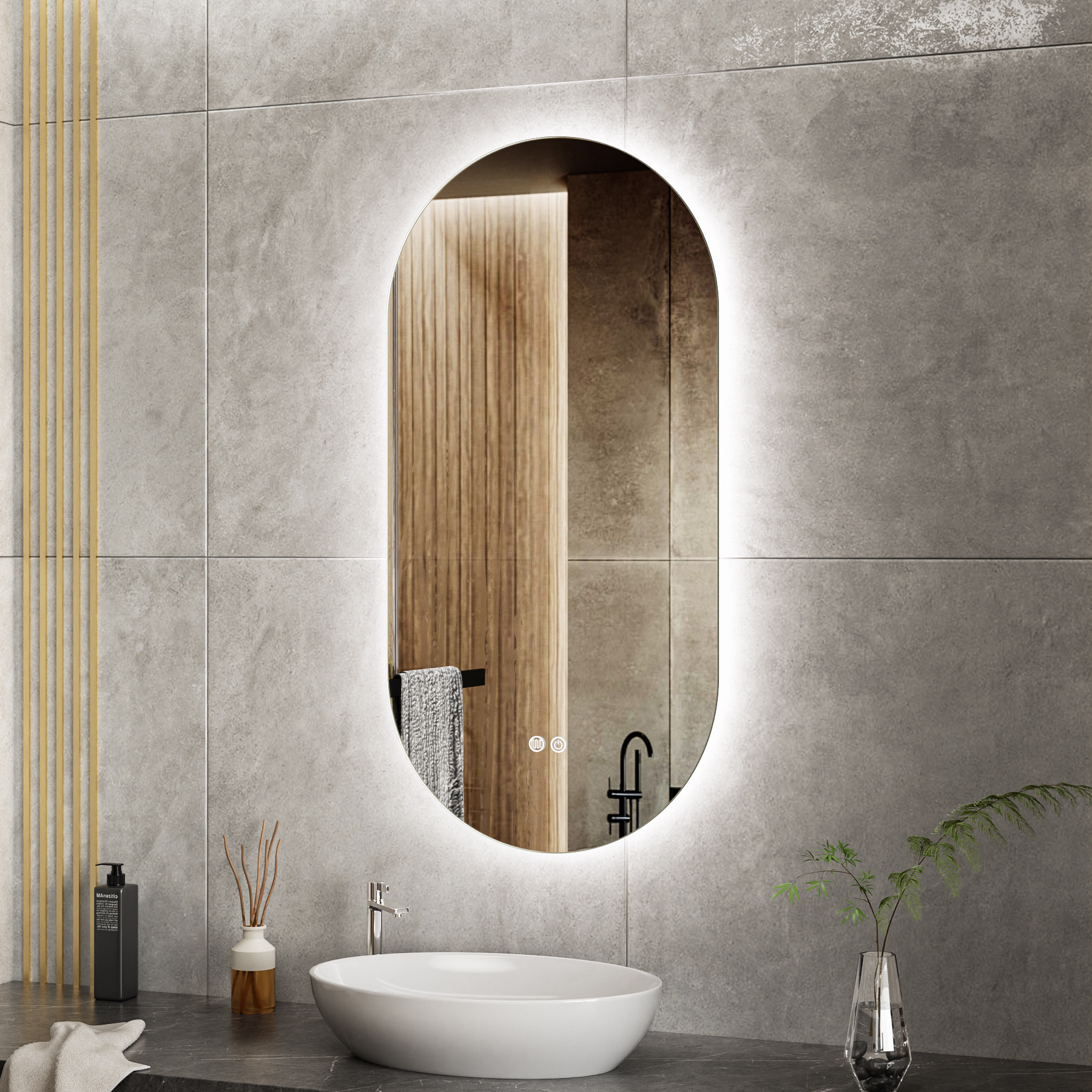 Ovale Badkamerspiegel 50 x 100 cm met Dimbare LED Verlichting en Anti-Condens