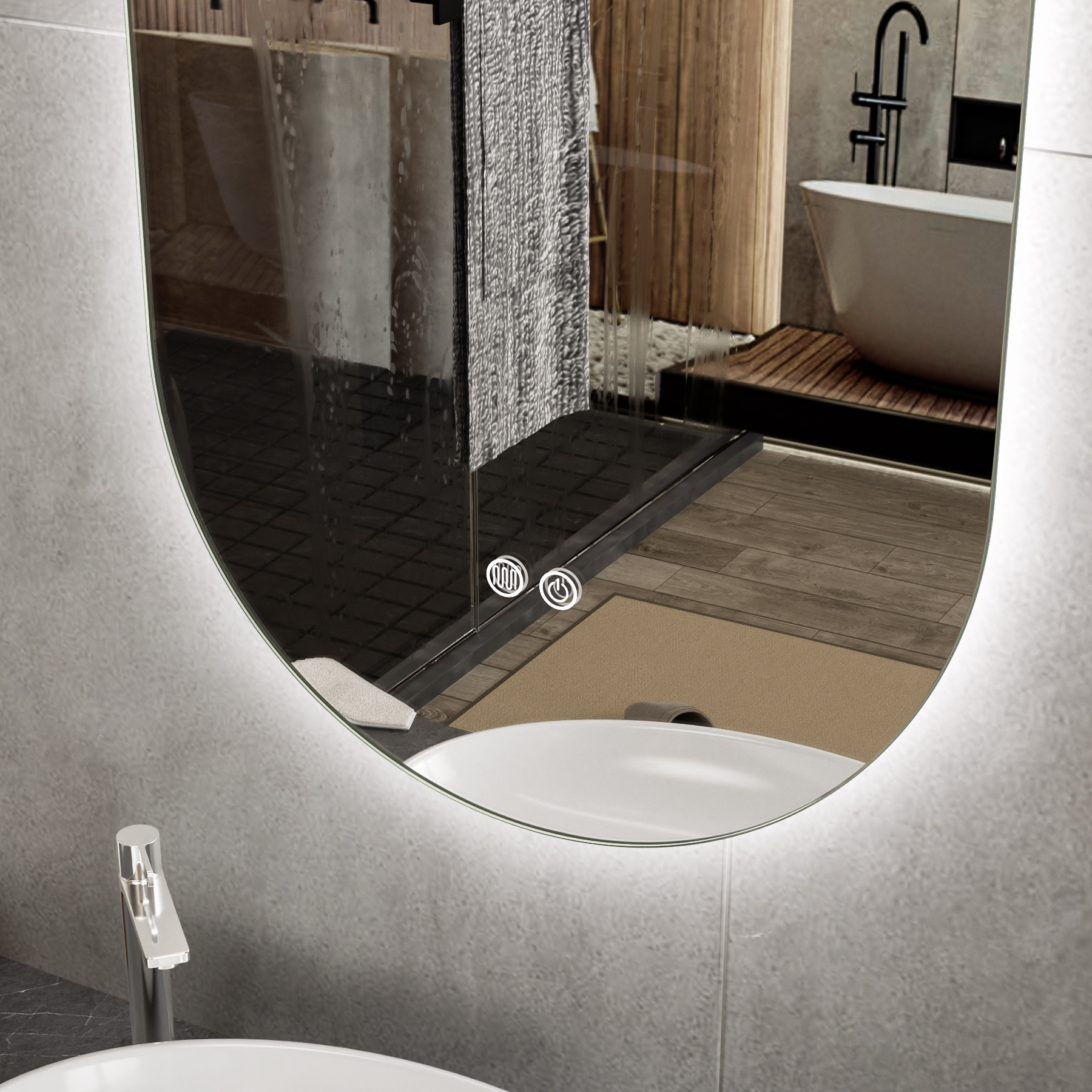 Het stijlvolle ovale design zorgt voor een luxe en moderne uitstraling en maakt deze design badkamerspiegel een perfecte toevoeging boven uw badkamermeubel.