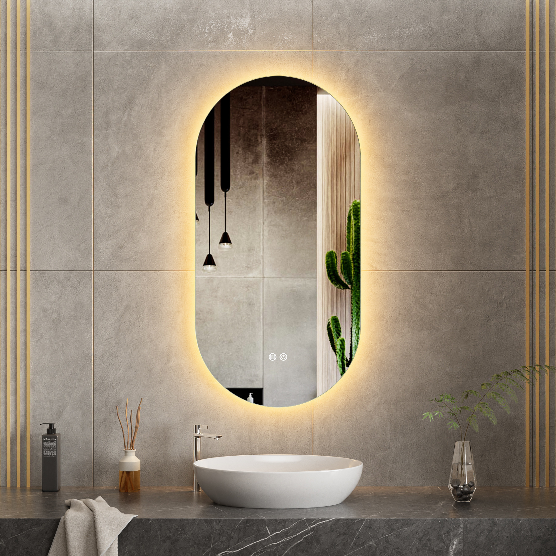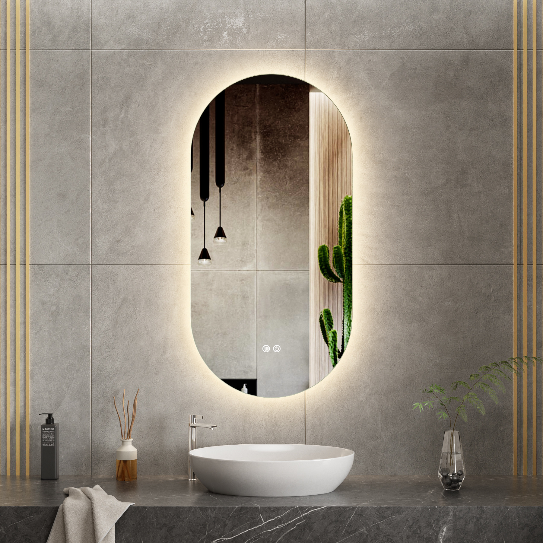 Deze ovale badkamerspiegel van 50 x 100 cm combineert een elegant design met moderne technologie. De geïntegreerde LED verlichting met 3 lichtkleuren zorgt voor perfect licht bij iedere situatie, terwijl de dimbare functie u volledige controle geeft over de lichtsterkte.
