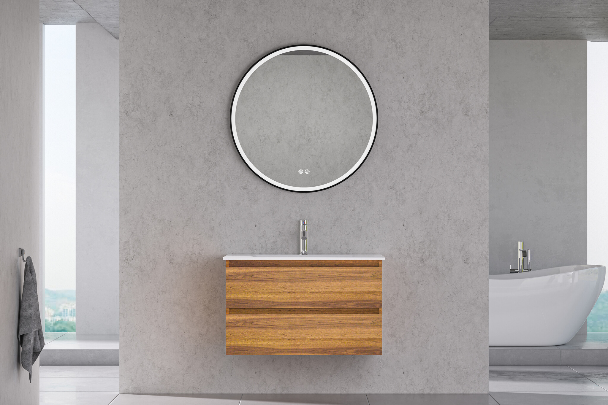 Bij het zwevende wastafelmeubel heeft u de keuze om een bijpassende spiegel met LED verlichting toe te voegen. Kies voor een ronde spiegel voor een zachte, moderne uitstraling of een ovale spiegel voor een elegante, klassieke look. Beide spiegelopties zijn beschikbaar met verlichting en verwarming (anticondens), wat zorgt voor optimaal gebruiksgemak. Met deze aanpassingsmogelijkheden richt u uw hangende wastafelmeubel 80 cm volledig naar uw eigen smaak en behoeften in, waardoor uw badkamer een unieke en persoonlijke touch krijgt!